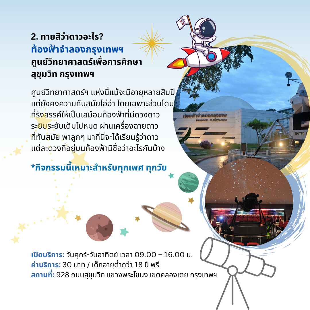 เครดิต: ชิลไปไหน, sanook, museum thailand, ท้องฟ้าจำลองกรุงเทพฯ, ศูนย์การเรียนรู้ป่าในกรุง ปตท. , wonder wood kids cafe