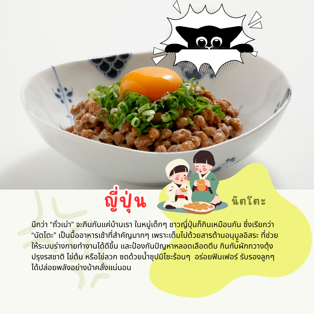 นึกว่า “ถั่วเน่า” จะกินกันแค่บ้านเรา ในหมู่เด็กๆ ชาวญี่ปุ่นก็กินเหมือนกัน ซึ่งเรียกว่า “นัตโตะ” เป็นมื้ออาหารเช้าที่สำคัญมากๆ เพราะเต็มไปด้วยสารต้านอนุมููลอิสระ ที่ช่วยให้ระบบร่างกายทำงานได้ดีขึ้น และป้องกันปัญหาหลอดเลือดตีบ กินกับผักกวางตุ้งปรุงรสชาติ ไข่ต้ม หรือไข่ลวก ซดด้วยน้ำซุปมิโซะร้อนๆ อร่อยฟินเฟอร์ รับรองลูกๆ ได้ปล่อยพลังอย่างบ้าคลั่งแน่นอน