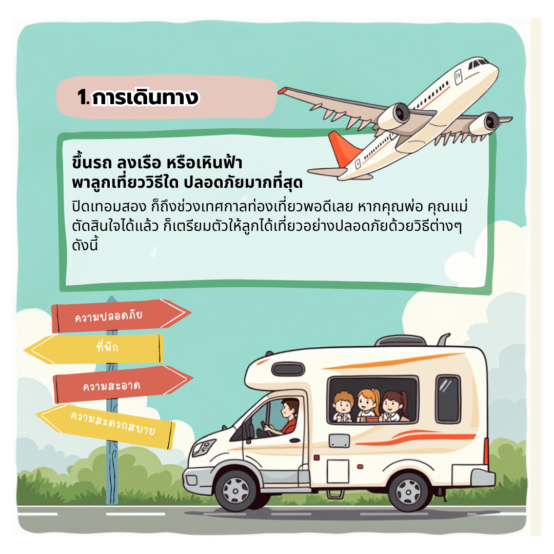 ปิดเทอมสอง ก็ถึงช่วงเทศกาลท่องเที่ยวพอดีเลย หากคุณพ่อ คุณแม่ตัดสินใจได้แล้ว ก็เตรียมตัวให้ลูกได้เที่ยวอย่างปลอดภัยด้วยวิธีต่างๆ ดังนี้