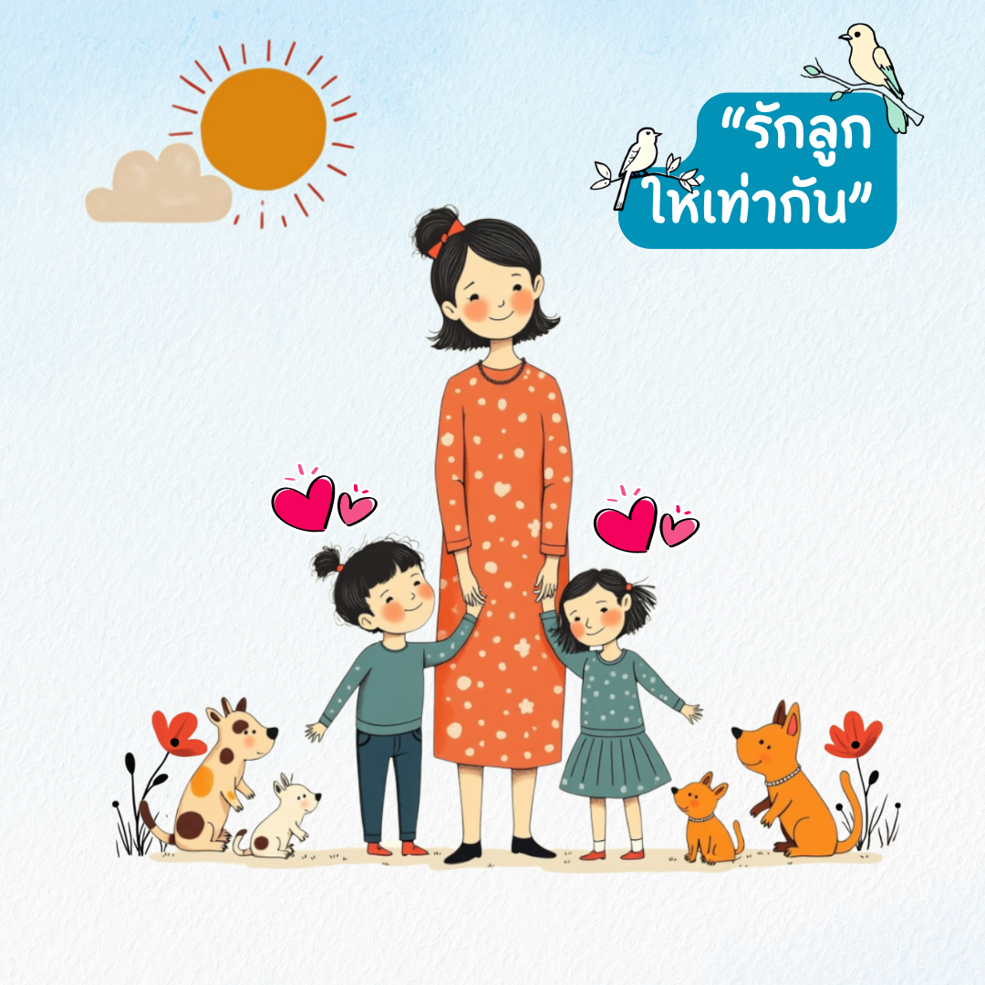 สำหรับคุณแม่เลี้ยงเดี่ยวที่มีลูกมากกว่า 1 คน สิ่งที่ควรกระทำมากที่สุดคือ การแบ่งปันความรักให้แก่ลูกเท่าๆ กัน ครอบครัวที่พ่อแม่แยกทางกันจะส่งผลให้เด็กๆ เกิดความรู้สึกไม่มั่นคงปลอดภัย รู้สึกว่าพวกเขาได้รับความรัก ความอบอุ่นไม่มากพอ หรือคิดว่าตัวเองไม่ได้รับมัน สิ่งนี้เองจะเป็นรอยร้าวรอยใหญ่ที่อาจจะเกิดขึ้นในจิตใจของทุกคนในบ้าน ซึ่งมันจะส่งผลกระทบในเชิงลบต่อการมีสัมพันธภาพที่ดีในครอบครัวอย่างแน่นอน ฉะนั้น คุณแม่ๆ ควรแสดงความรักแก่ลูกในทุกแง่มุมอย่างเท่าเทียมกัน ให้อะไรก็ต้องให้เท่ากัน เสื้อผ้าก็ต้องให้ลูกแต่ละคนได้มีโอกาสเลือกเอง ตัดสินใจเอง และสอนให้ลูกรู้จักรับผิดชอบต่อสิ่งที่ตัวเองเลือกควบคู่ตามกันไปด้วย