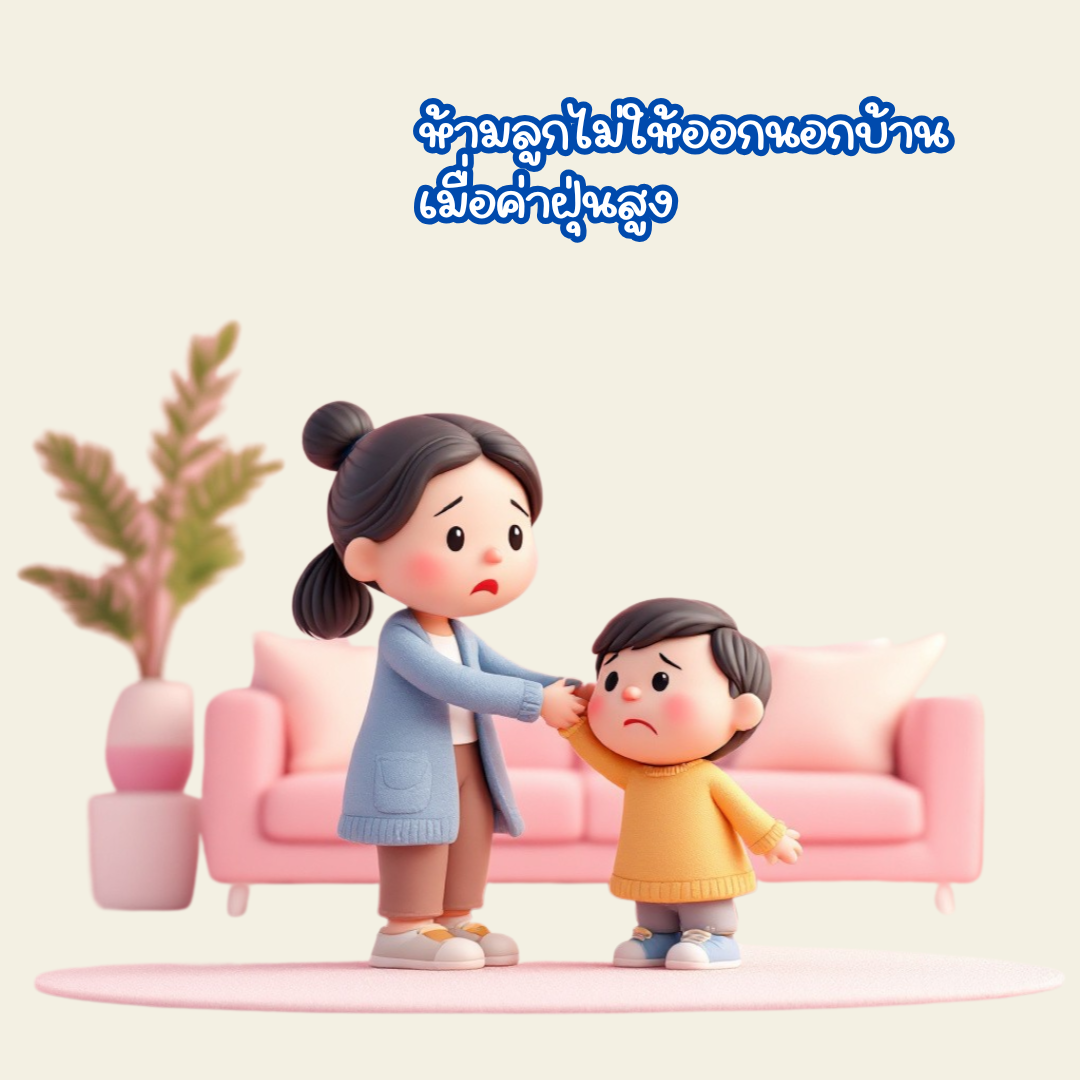 - ค่าฝุ่นที่ปลอดภัยสำหรับเด็กควรต่ำกว่า 50 AQI (หากเกิน 100 ควรเลี่ยงการออกไปข้างนอก)