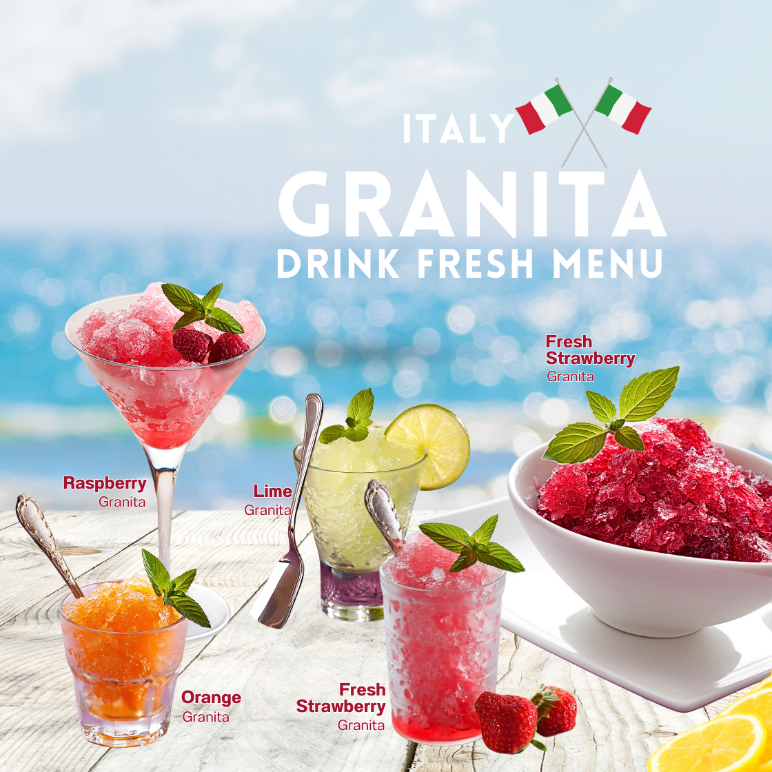 การสร้างสรรค์เมนู Granita มีต้นกำเนิดจากประเทศอิตาลีในช่วงต้นศตวรรษที่ 19 ซึ่งเริ่มต้นจากการทำเครื่องดื่มเย็นที่ผสมผสานกับน้ำตาลและรสชาติจากผลไม้ โดยการใช้เทคนิคการแช่แข็งและการขูดให้เป็นเกล็ดน้ำแข็ง ด้วยวัตถุดิบธรรมชาติที่มีในท้องถิ่น เช่น มะนาว ส้ม หรือเบอร์รี่ต่างๆ ในพื้นที่ของเกาะซิซิลี