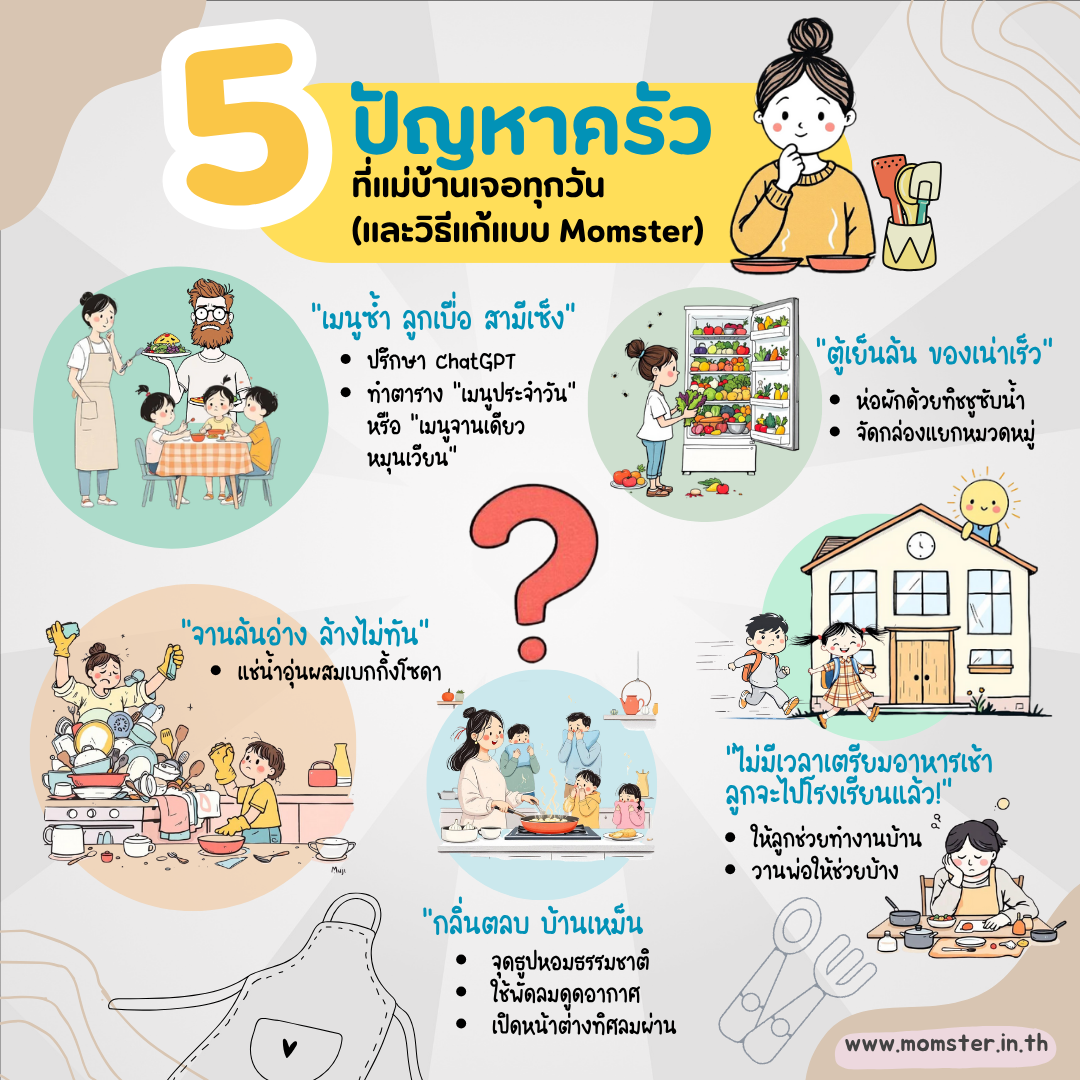 5 ปัญหาครัว ที่แม่บ้านเจอทุกวัน (และวิธีแก้แบบ Momster)