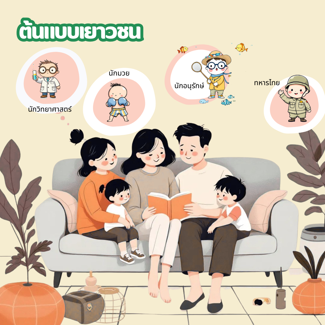 เล่าเรื่องเด็กและเยาวชนที่ประสบความสำเร็จ ไม่ว่าจะเป็นนักกีฬา นักวิทยาศาสตร์ หรือเยาวชนไทยที่ทำสิ่งดีๆ ให้สังคม เรื่องเล่าที่มีพลังจะช่วยจุดประกายความกล้าและความหวังให้กับลูกได้