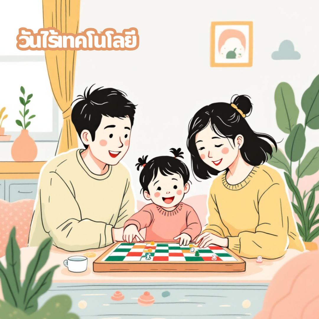 ลองตั้งเวลาไว้สัก 2–3 ชั่วโมง ปิดมือถือ ปิดทีวี แล้วใช้เวลาเล่นกับลูกอย่างเต็มที่ อาจจะไปวิ่งเล่น วาดรูป หรือทำขนมง่ายๆ การละจากหน้าจอ จะช่วยให้ลูกเห็นคุณค่าของเวลาที่ใช้กับครอบครัวจริงๆ