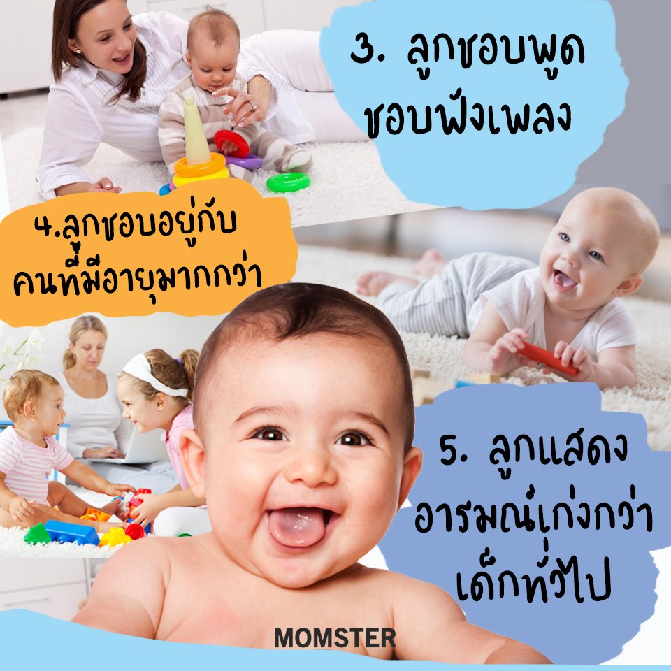 ลูกพูดเก่ง พูดได้ไว และใช้คำพูดได้ดีกว่าเด็กทั่วไป รวมถึงชอบฟังเพลง เพราะเพลงมีส่วนช่วยพัฒนาทักษะด้านการสื่อสาร ทำให้ลูกพูดได้เร็วขึ้น