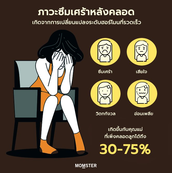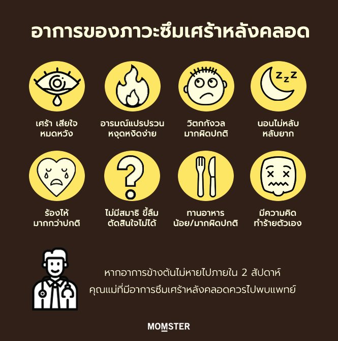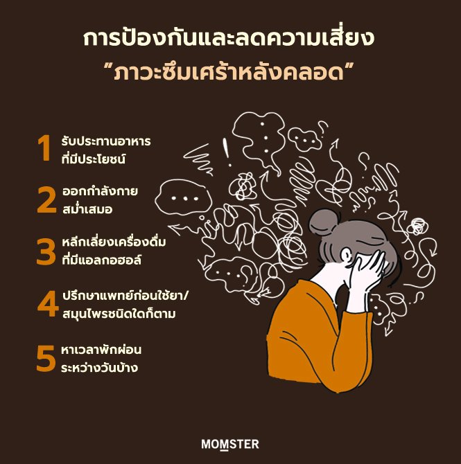 - มีความคิดทำร้ายร่างกายตัวเองหรือลูกน้อย