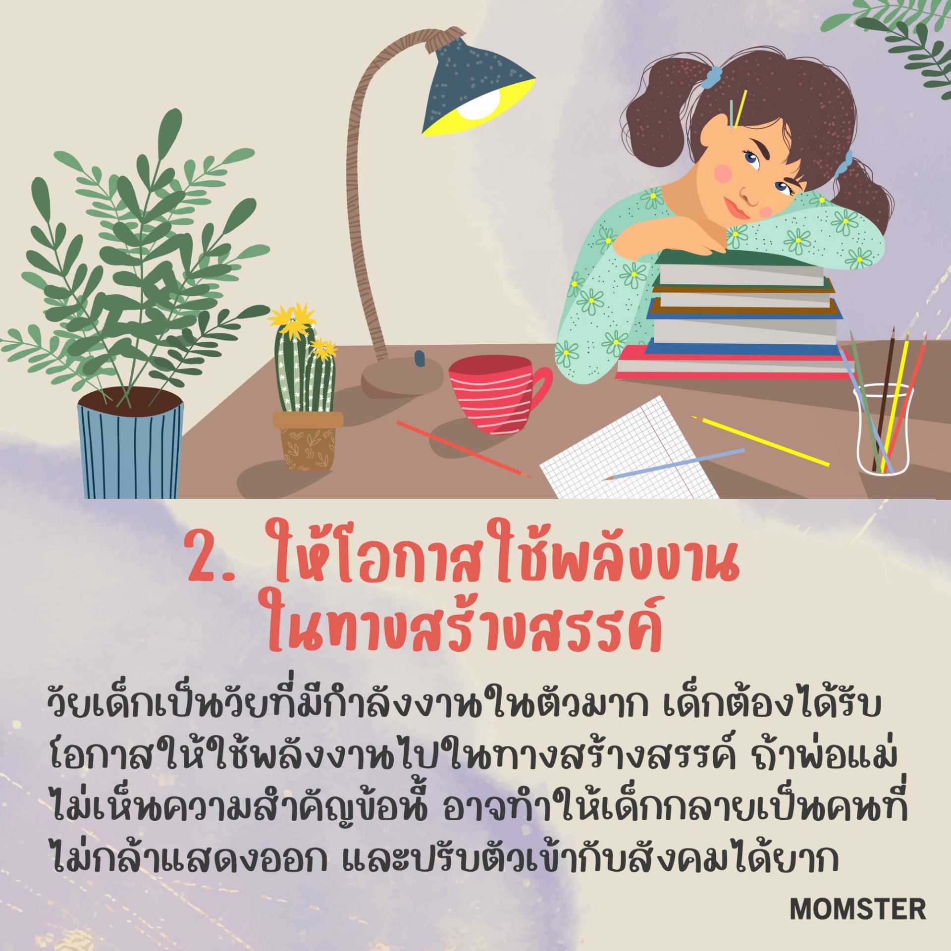 วัยเด็กเป็นวัยที่มีกำลังงานในตัวมาก เด็กต้องได้รับโอกาสให้ใช้พลังงานไปในทางสร้างสรรค์ เช่น การเล่น การออกกำลังกายในเกมกีฬาต่าง ๆ การมีกิจกรรมอื่น ๆ ที่เหมาะสม ถ้าพ่อแม่ไม่เห็นความสำคัญข้อนี้ ต้องการให้เด็กอยู่อย่างสงบเรียบร้อยเสมอ อาจทำให้กลายเป็นเด็กที่ไม่กล้าแสดงออก เชื่องซึม ไม่ร่าเริงแจ่มใส ไม่มีความคิดริเริ่มสร้างสรรค์ ปรับตัวเข้ากับสังคมได้ยาก
