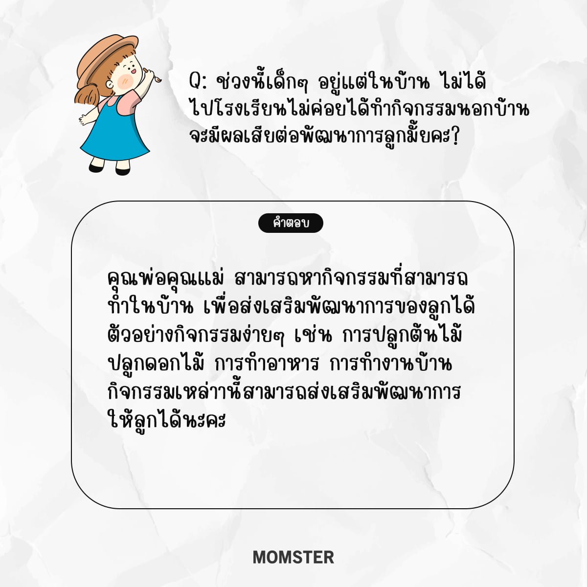 9: ช่วงนี้เด็กๆ อยู่แต่ในบ้าน ไม่ได้ไปโรงเรียนไม่ค่อยได้ทำกิจกรรมนอกบ้าน จะมีผลเสียต่อพัฒนาการลูกมั้ยคะ?