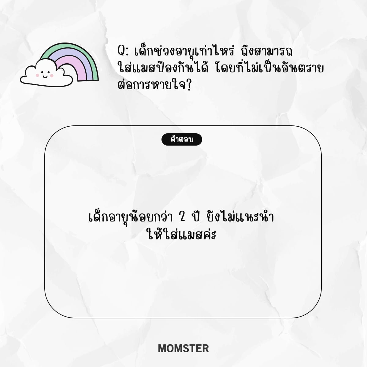 : เด็กอายุน้อยกว่า 2 ปี ยังไม่แนะนำให้ใส่แมสค่ะ