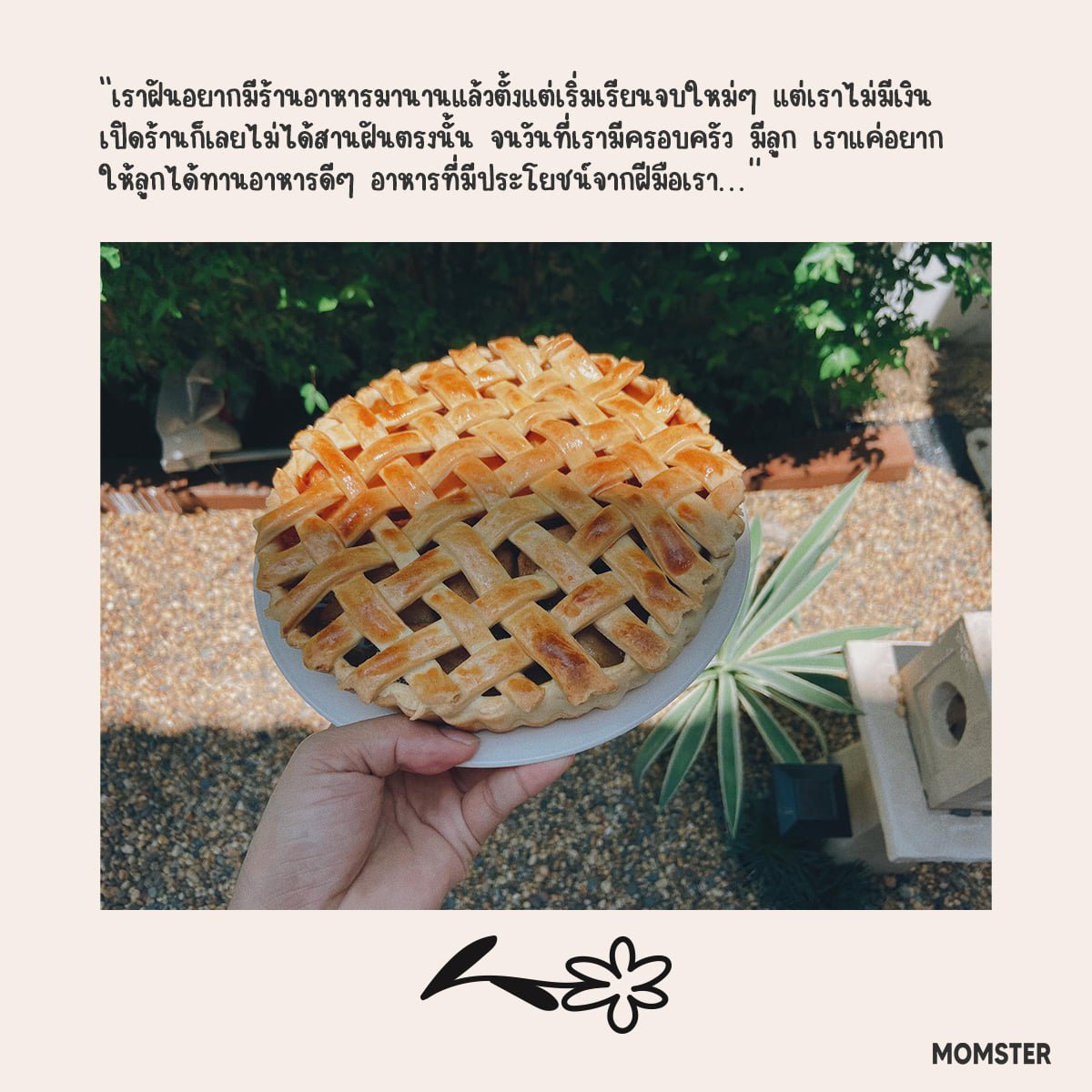 “เราฝันอยากมีร้านอาหารมานานแล้วตั้งแต่เริ่มเรียนจบใหม่ๆ แต่เราไม่มีเงินเปิดร้านก็เลยไม่ได้สานฝันตรงนั้น จนวันที่เรามีครอบครัว มีลูก เราแค่อยากให้ลูกได้ทานอาหารดีๆ อาหารที่มีประโยชน์จากฝีมือเรา…”
