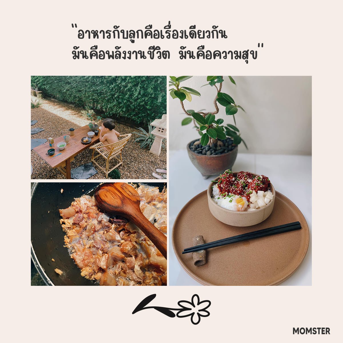 ตอนนี้อยากตั้งใจเลี้ยงลูกให้ดีที่สุดก่อนค่ะ ส่วนการทำอาหารขายเป็นเรื่องรองลงมา… เราเป็นคนชอบทำอาหาร ยังไงก็ทำให้ลูกให้สามีทานทุกวันอยู่แล้ว แต่ในอนาคตถ้าลูกเข้าโรงเรียนแล้วเรายังไหวมีเวลาว่างมากขึ้น ก็อยากสานฝันตัวเองให้ต่อนะ 555 ส่วนรูปแบบนั้น เราอยากมีร้านอาหารเล็กๆ บรรยากาศอบอุ่น อารมณ์เหมือนร้านอาหารตามสั่งแบบโบราณๆ มีกลิ่นอายญี่ปุ่นปนอยู่ด้วย