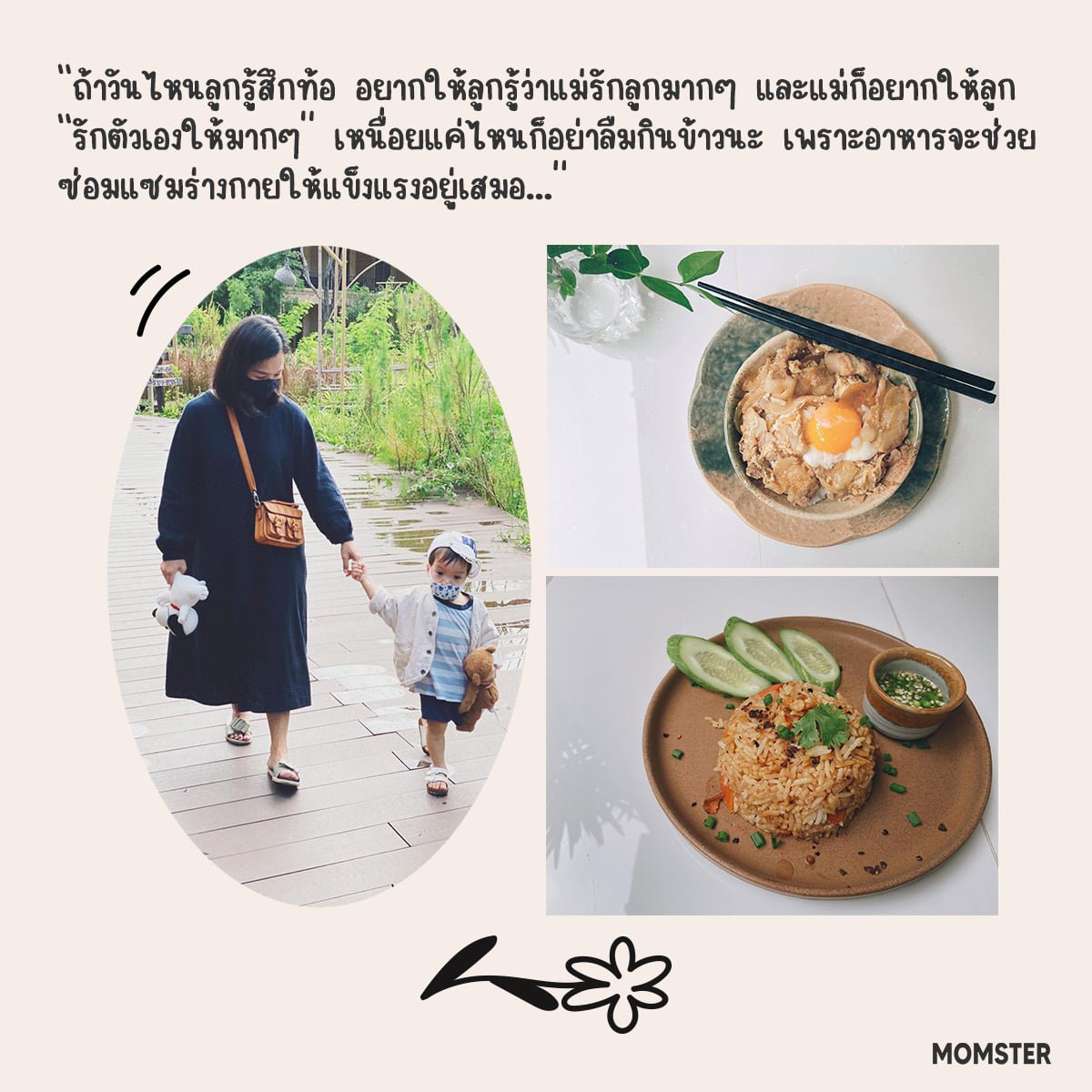 …เราอยากให้ message นี้ถูกส่งต่อไปยังลูกชายของเรา อยากให้เขารู้ว่าถ้าวันหนึ่งที่เขาต้องไปอยู่ไหนไกลๆ หรือวันที่เราจากเขาไปแล้ว อยากให้เขาเข้าใจว่าเราไม่ได้หายไปไหนนะ เราจะยังอยู่กับเขาเสมอ ติดตามไปทุกที่ผ่านอาหารทุกจานผ่านข้าวทุกคำที่เขากิน… ถ้าวันไหนลูกรู้สึกท้อ อยากให้ลูกรู้ว่า แม่รักลูกมากๆ และแม่ก็อยากให้ลูก “รักตัวเองให้มากๆ” เหนื่อยแค่ไหนก็อย่าลืมกินข้าวนะ เพราะอาหารจะช่วยซ่อมแซมร่างกายให้แข็งแรงอยู่เสมอ แต่ถ้าวันนึงรู้สึกว่าตัวเองอ้วน ก็อย่าลดความอ้วนด้วยการอดอาหารนะครับ (ร้องไห้)