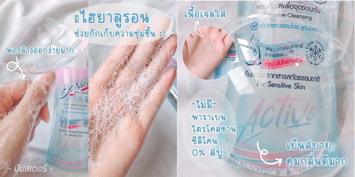 เห็นขวดตอนแรกถึงกับสงสัย ผลิตภัณฑ์ทำความสะอาดน้องจุดซ่อนเร้น “ทำไมต้อง Active ด้วยอะ??” แต่พอลองใช้แล้วก็เข้าใจเลยว่าทำไม!! ก็เพราะว่าเจ้า BeNice Feminine Cleansing สูตร Active ตอบโจทย์มนุษย์แม่กิจกรรมเยอะแบบมัมมาก คือไม่ว่ามัมจะ “พาลูกไปวิ่งเล่น ทำงานบ้าน หรือไปจ่ายตลาด” เจ้าน้องล้างจุดซ่อนเร้นตัวนี้ ก็สามารถคุมเรื่องกลิ่นบริเวณน้องสาวได้อย่างดี ~ ~ แล้วก็ช่วยให้มั่นใจมากขึ้น