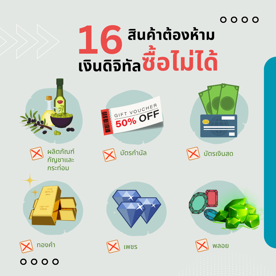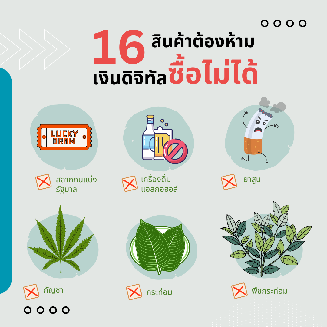 คราวนี้เรามาดูว่า “สินค้าต้องห้าม 16 รายการ” ที่เข้าข่ายไม่สามารถใช้จ่ายด้วยเงินดิจิทัลได้นั้น มีอะไรบ้าง